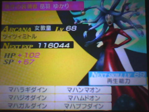 それにしても4属性継承のラクシュミのレベルが3上がってて68でした。